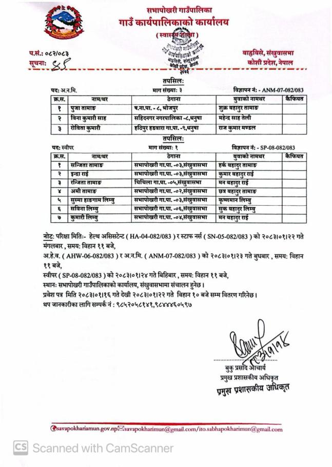 वि.न. ANM 05-081-082 को अन्तिम नतिजा प्रकाशन गरिएको सम्बन्धमा ।